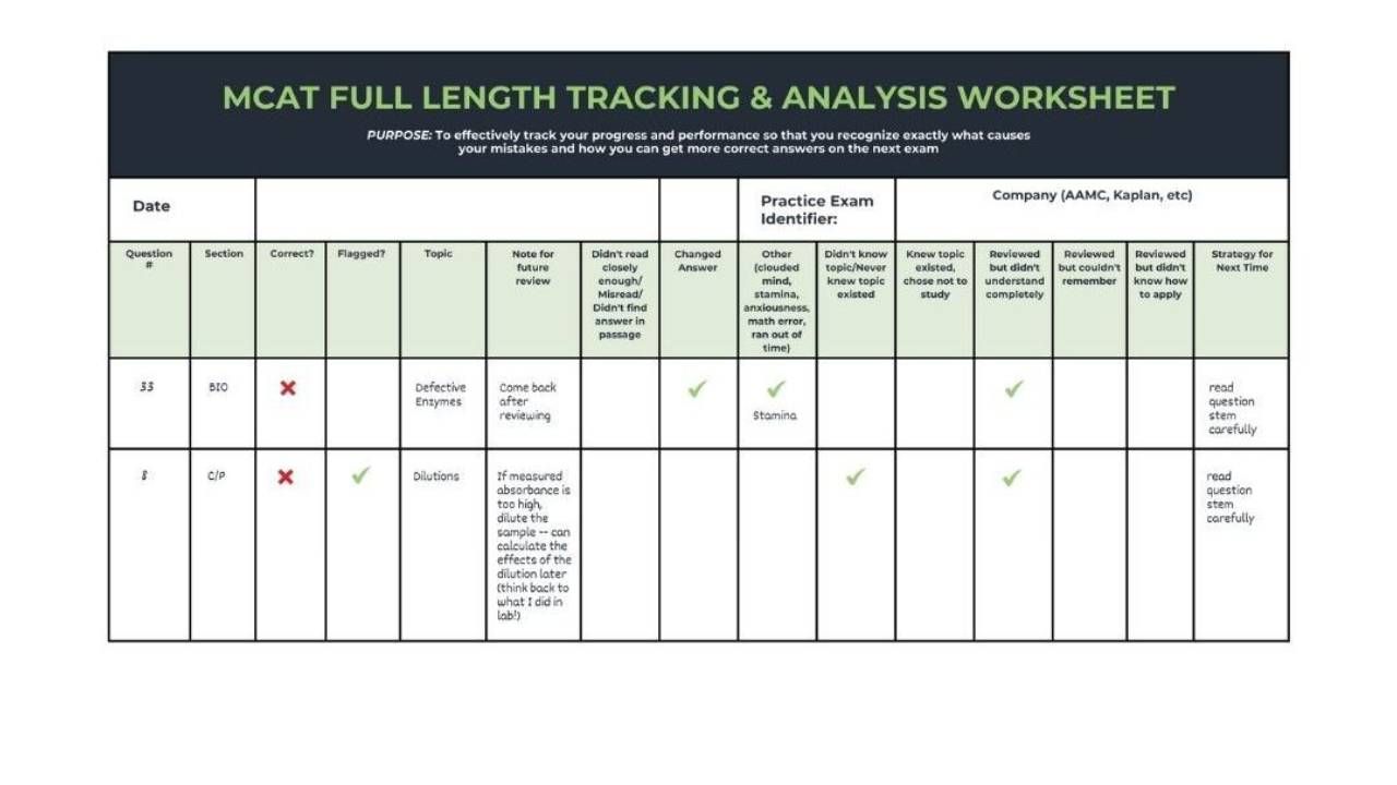 MCAT Mistake Tracker & Analysis Worksheet & Template